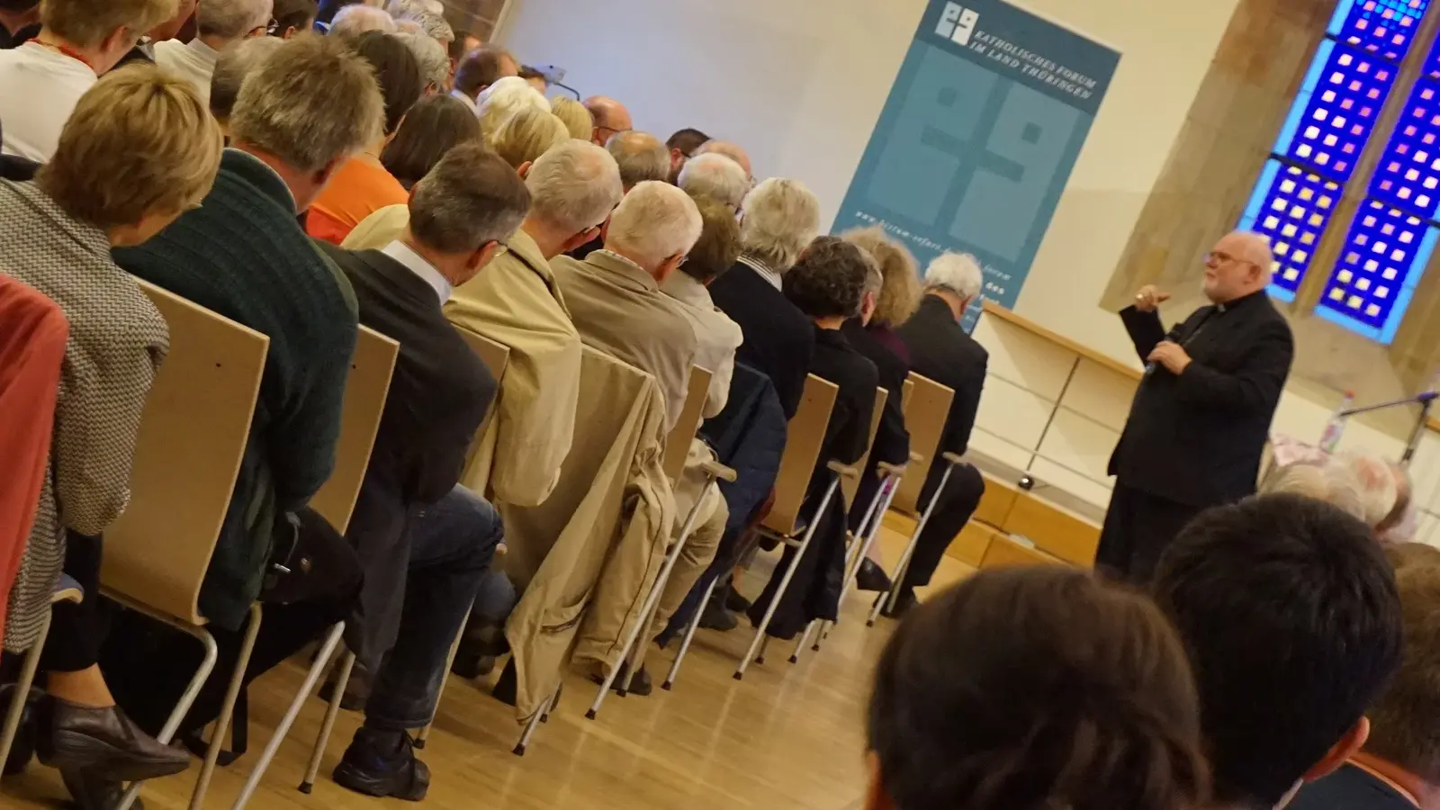Um Hoffnung als innere Haltung beziehungsweise als zutiefst menschliches Weltverständnis ging es auch im Vortrag von Bischof Michael Gerber, mit dem die diesjährigen Kreuzganggespräche zu Ende gingen. Gerber begann seinen Vortrag mit einer Bestandsaufnahme unserer Gegenwart, die von einem „Verlust der großen Narrative“ geprägt sei. Hierbei dachte er an religiöse Narrative, den Glauben an stetigen Fortschritt und unbegrenztes Wachstum und die Idee, dass wir uns als Gesellschaft immer zu mehr Freiheit und mehr Demokratie hin entwickeln. Ein weiteres Merkmal unserer Realität sei der von Hartmut Rosa beschriebene „rasende Stillstand“, der von den Menschen immer mehr einfordere, ohne ihnen gleichzeitig die Perspektive eines besseren Lebens anzubieten. Es sei immer schwerer vorauszusehen, wie die Welt in den nächsten zwei oder drei Jahren aussehe. Ähnlich wie Frank Richter bemängelte auch Bischof Gerber das Fehlen von kontemplativen Unterbrechungen in unserem Alltag. All dem stellte er den hoffnungsvollen Geist der Osterevangelien gegenüber: „Gerade für unsere Zeit der großen Krisen, der großen Disruptionen, ist das Evangelium da“. Hierbei identifizierte er sechs Kernaspekte der biblischen Texte als besonders bedeutend: Menschen erführen sich als persönlich angesprochen, lernten aber gleichzeitig auch, kritisch auf die eigene Geschichte zu schauen. Zentral sei auch die Erfahrung von Vergebung und Barmherzigkeit, die in der heutigen Gesellschaft kaum noch Platz habe. So fehlten beispielsweise Räume, in denen das Übernehmen von Verantwortung geübt, eigenes Scheitern erlebt und durch Vergebung überwunden werden könne. Auch dass Verwundungen als Durchbruch zu einem neuen Leben erfahren werden können und die Erfahrung einer bleibenden Unverfügbarkeit, die sich etwa in der Begegnug des auferstandenen Jesus mit Maria Magdalena und seinem Ausspruch „Noli me tangere“ zeigt, sind nach Meinung des Fuldaer Bischofs essenzielle Botschaften des Evangeliums, die durch die Erfahrung eines persönlichen Auftrags im Kontext einer gemeinschaftlichen Sendung ergänzt werden. Diese Botschaft sei „mehr als nur eine Idee“. Sie gebe vielmehr der Dynamik der Seele und den Brüchen in der eigenen Biographie einen Sinn und spende dadurch eine Hoffnung, die anders als Optimismus Negativität und Unverfügbarkeit mit einschließe.