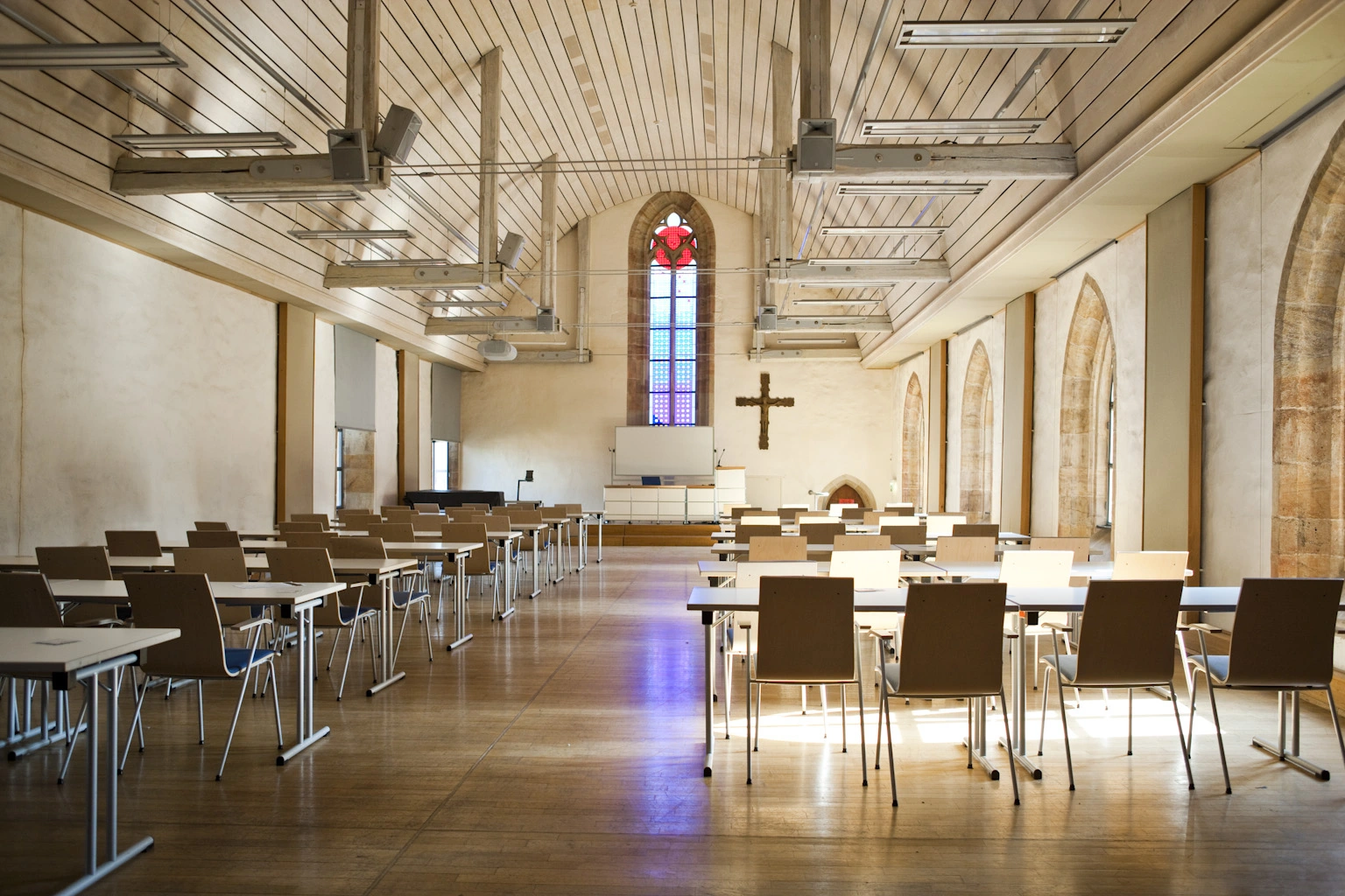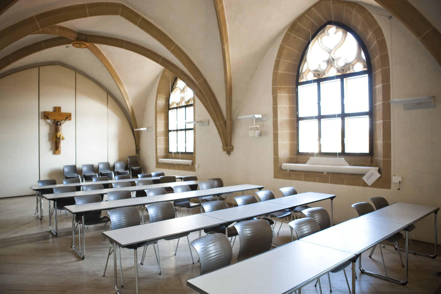 Direkt in einem Seitenflügel des Erfurter Doms liegen sie: die magischen Seminarräume unserer Fakultät. Im Hörsaal Coelicum sowie in der Kapelle Kiliani begleitet außerdem ein ganz besonderer Geist der Vergangenheit die Studierenden: hier lehrte und lernte schon der berühmte Martin Luther. Die Kapelle Kiliani ist im Erdgeschoss des Dom-Kreuzgangs gelegen, das Coelicum im Obergeschoss - der Zugang kann über die "Tote Treppe" (Eingang vom Domplatz zu Beginn der Domstraße und der Domstufen) oder über den Besuchereingang in der Domstraße 10 erfolgen. Neben den Seminarräumen befindet sich in der Domstraße weiterhin das Büro unseres Dekans sowie das entsprechende Sekretariat.