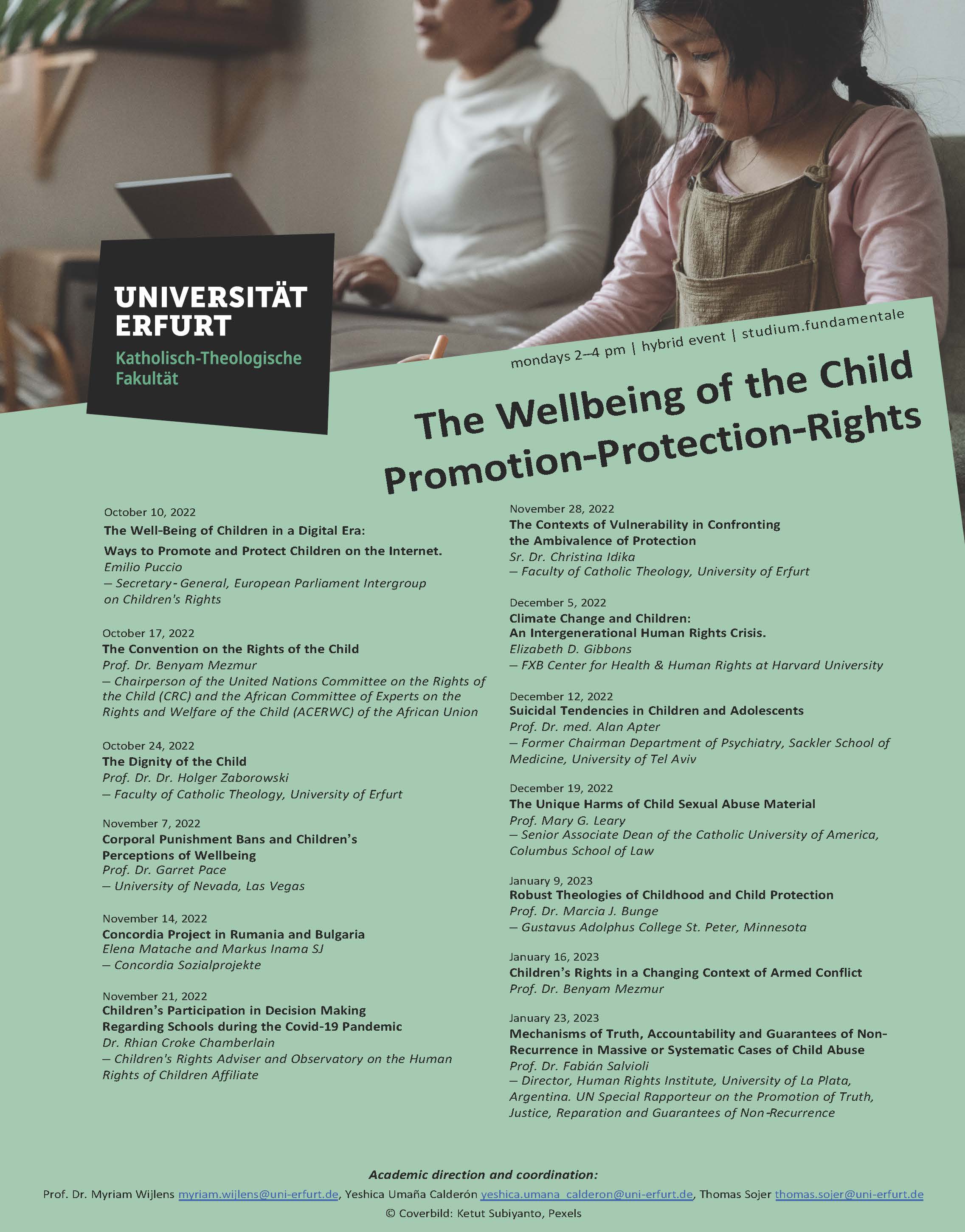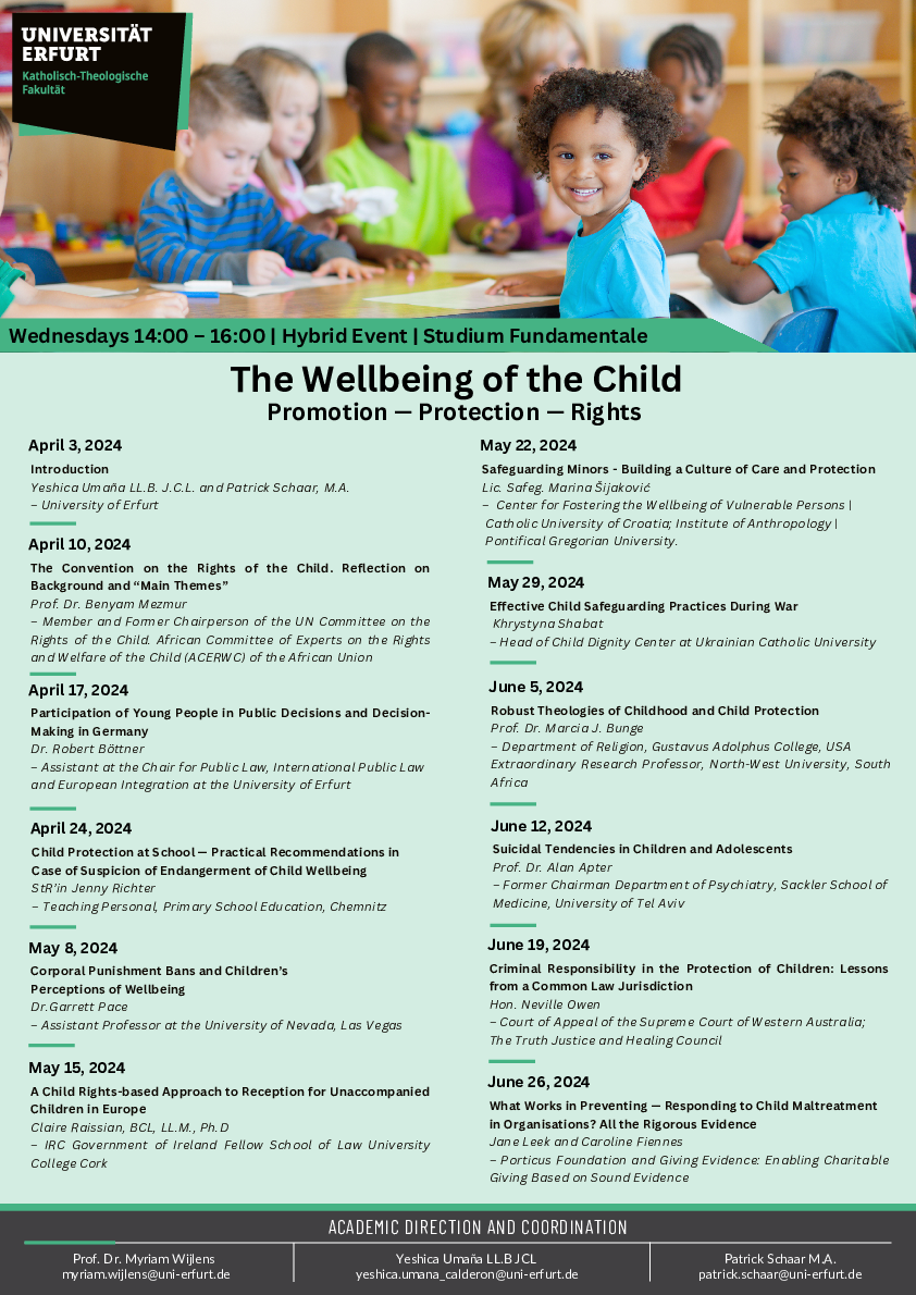 Die Professur für Kirchenrecht lädt Sie herzlich zur Lehrveranstaltung „Kindeswohl: Förderung - Schutz - Recht" im Wintersemester 2023/2024 ein.