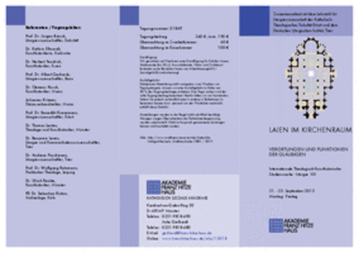 Internationale Theologisch-Kunsthistorische Studienwoche - Liturgie XIX: Laien im Kirchenraum. Den Fyler können Sie hier herunterladen.