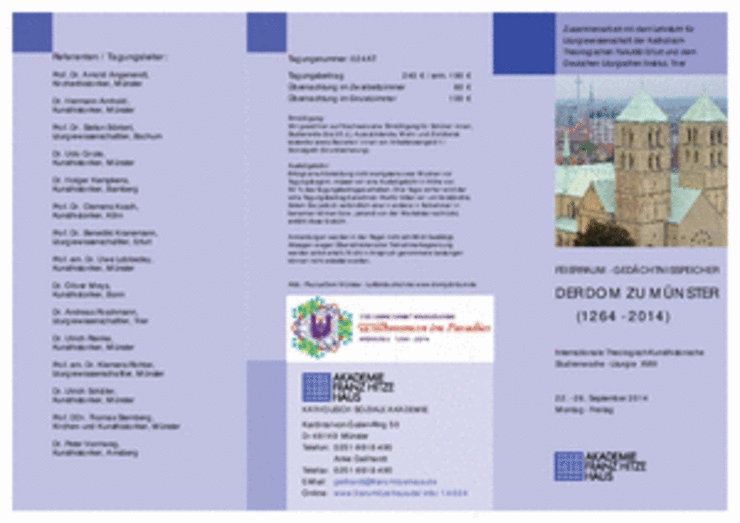 Herzliche Einladung zur Internationalen Theologisch-Kunsthistorischen Studienwoche - Liturgie XVIII 22.-26. September 2014 in Münster.
