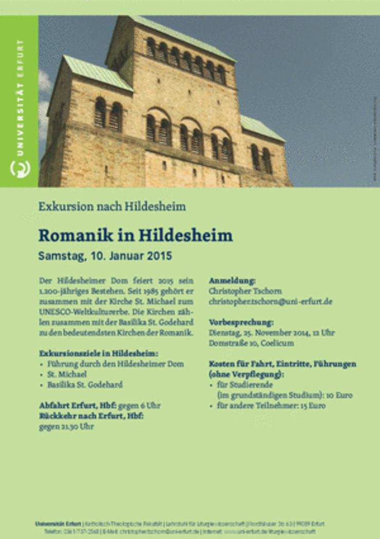 Herzliche Einladung zur Exkursion nach Hildesheim am 10. Januar 2015.