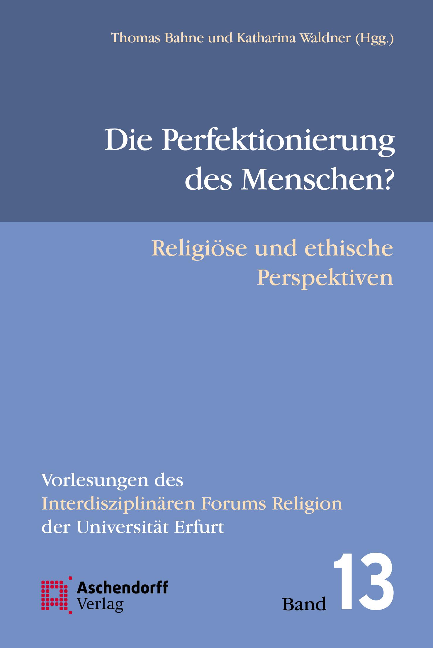 Thomas Bahne / Katharina Waldner (Hgg.), Die Perfektionierung des Menschen? Religiöse und ethische Perspektiven (Vorlesungen des Interdisziplinären Forums Religion der Universität Erfurt, Bd. 13), Münster 2018. (Zum Download: Buchcover, Klappentext, Inhaltsverzeichnis)