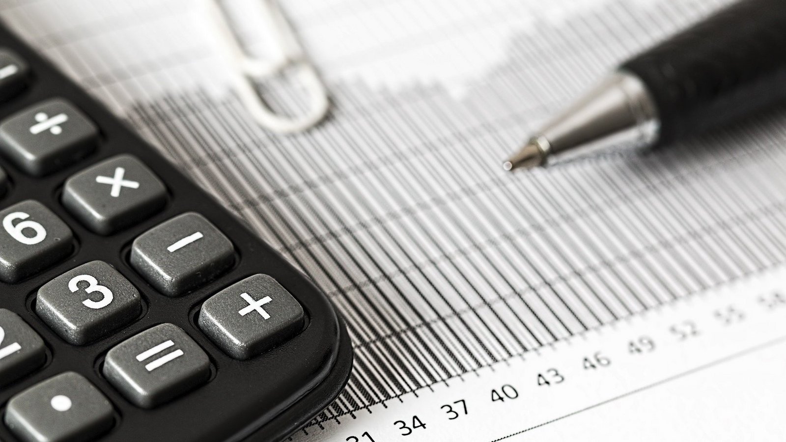 Ein Taschenrechner liegt auf einem Blatt Papier