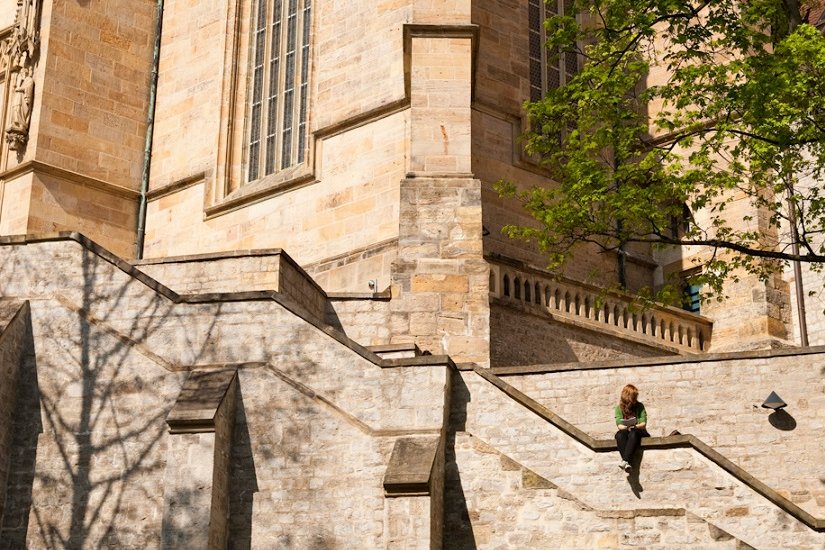 Direkt in einem Seitenflügel des Erfurter Doms liegen sie: die magischen Seminarräume unserer Fakultät. Im Hörsaal Coelicum sowie in der Kapelle Kiliani begleitet außerdem ein ganz besonderer Geist der Vergangenheit die Studierenden: Hier lehrte und lernte schon der berühmte Martin Luther. Die Kapelle Kiliani ist im Erdgeschoss des Dom-Kreuzgangs gelegen, das Coelicum im Obergeschoss - der Zugang kann über die "Tote Treppe" (Eingang vom Domplatz zu Beginn der Domstraße und der Domstufen) oder über den Besuchereingang in der Domstraße 10 erfolgen. Neben den Seminarräumen befindet sich in der Domstraße weiterhin das Büro unseres Dekans sowie das entsprechende Sekretariat.
