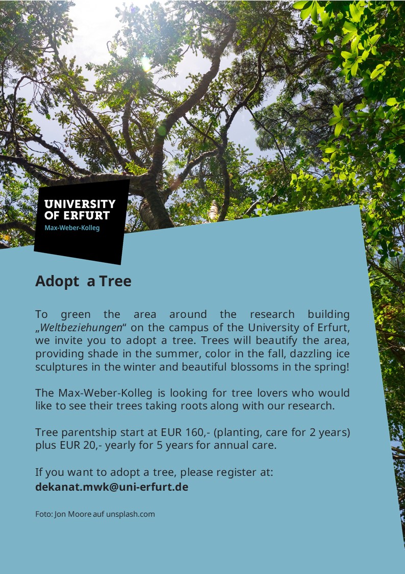 Das Max-Weber-Kolleg sucht Baumliebhaber, die sehen möchten, wie ihre Bäume - zusammen mit unserer Forschung - Wurzeln schlagen.