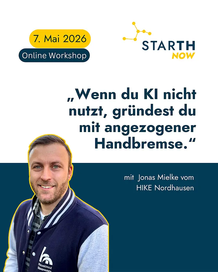 Egal, ob Sie gerade erst anfangen oder schon mitten in ihrer Gründung stecken – in den monatlichen StarTH Now-Workshops vermitteln wir Ihnen Wissen und Skills, um ihre Gründungsidee voranzutreiben!