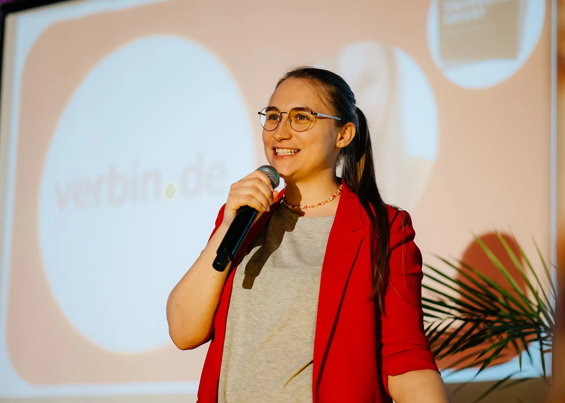 Nele Birte Anika Schöfisch (StarTH-Stipendiatin) überzeugte mit ihrem Pitch zu verbin.de – Angebote zur Vermittlung von zwischenmenschlichen Kompetenzen für ein noch besseres gesellschaftliches Miteinander.