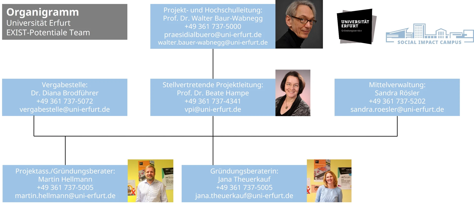 Unser Team unter der Leitung von Herrn Prof. Walter Bauer-Wabnegg, Präsident der Universität Erfurt, nebst Stellvertreterin, Frau Prof. Beate Hampe, besteht aus: