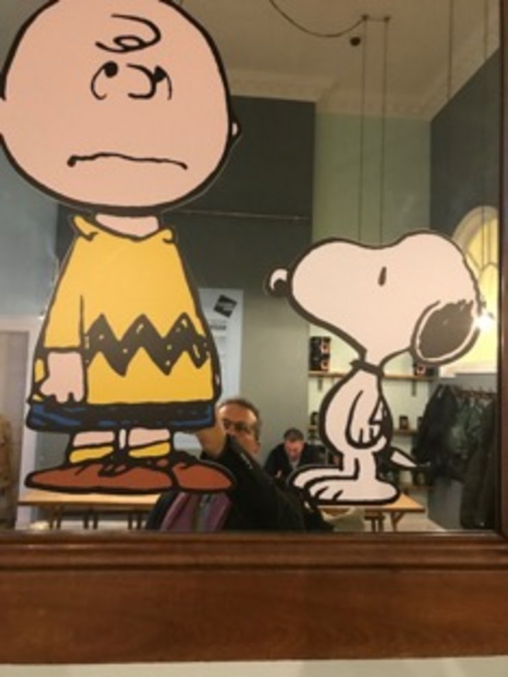 Perhaps we shouldn’t miss the chance to laugh at this and ourselves while looking through this version of a West window – indeed, in the spirit of Charles Schulz’ rightly celebrated “Peanuts”.