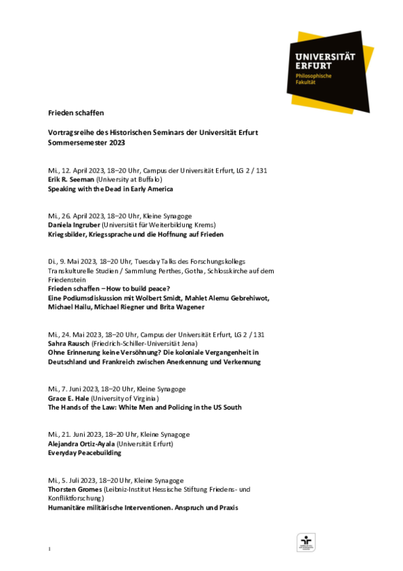 In Kooperation mit der Thüringer Landeszentrale für politische Bildung lädt das Forschungszentrum Gotha der Universität Erfurt am Dienstag, 14. Oktober, zu einem öffentlichen Abendvortrag mit anschließendem Gespräch ein. Unter dem Titel „Der…