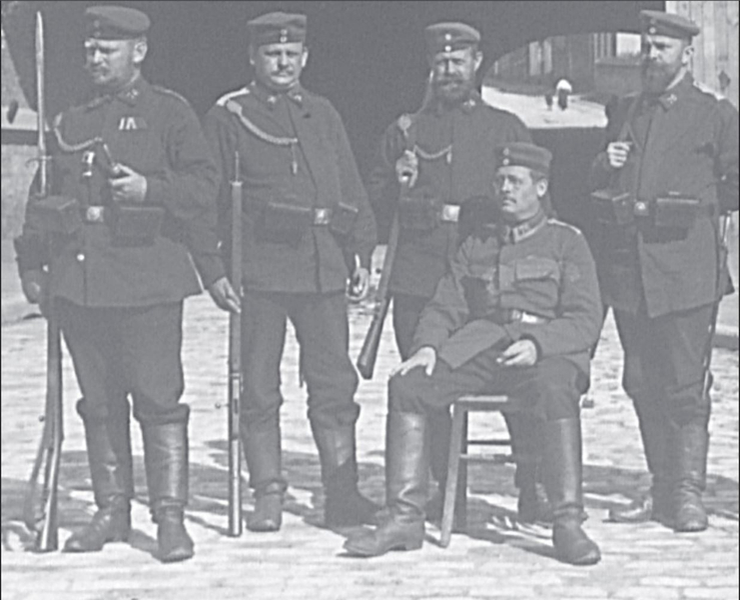Bild: Feldpostkarte, Hermann Haack (im Vordergrund sitzend) als Landsturmoffizier, Arlon, Tunnelwache am 27. September 1914 © Sammlung Perthes.