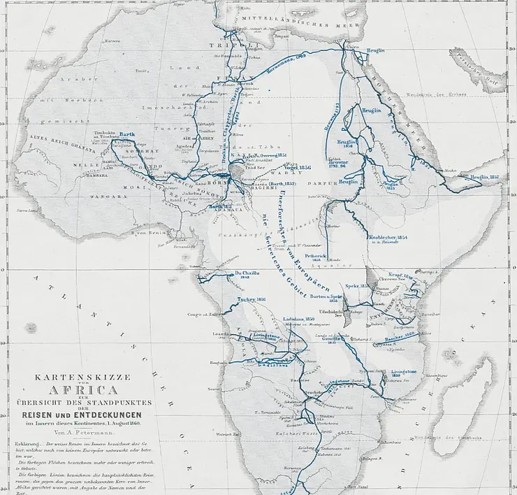 Wenn der Zusammenhang zwischen der europäischen Erforschung Afrikas und dem Kolonialismus aus der Retrospektive eindeutig erscheint, dann mag es verwundern, dass noch in den 1860er Jahren afrikanische Reisende, Gelehrte und Politiker europäische Wissenschaftler zu sich einluden, sich mit ihnen austauschten und sie bei ihren Unternehmen unterstützten. Sie taten dies auf Grundlage ihrer jeweils eigenen Motive und Strategien, sodass der Verlauf vieler vorkolonialer Expeditionen zwischen sehr unterschiedlichen – und nicht allein europäischen – Interessengruppen ausgehandelt wurde. Vor diesem Hintergrund ist es notwendig, solche Unternehmungen nicht länger als die zielgerichtet verlaufenden Projekte einzelner Akteure zu verstehen, sondern vielmehr als transkontinentale Koproduktionen.