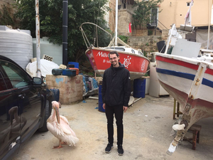 Dritte Station: eine alte Kirche, neben der wir auf einen Pelikan stießen, der sich sogar auf ein Selfie einließ und einem kurzen Spaziergang zum Meer.