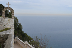 Zweite Station: ein Kloster direkt an der Klippe mit einem wunderbaren Blick auf das türkisfarbene Meer.