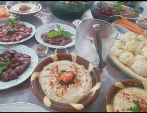 Neben seiner wunderschönen Natur und den gastfreundlichen Menschen besticht der Libanon durch seine vielfältige Küche. Die Küche bietet etwas für jeden, ob Veganer, Vegetarier, Pescetarier oder einfach nur Allesesser. Zuerst gäbe es die Mezze. Das sind kleine Vorspeiseplatten mit kalten und warmen Gerichten. Die beliebtesten Vorspeisen sind Tabbouleh, ein Salat auf Basis von Bulgur. Dann Fattoush, ein Salat mit libanesischen Brotcroutons, der durch sein saures Dressing einen einzigartigen Geschmack erhält. Zudem gibt es Hummus, eine Paste aus Kichererbsen und Babaganoush, eine Auberginenpaste. Wer davon genug kriegt, hat noch die Auswahl einer Palette von anderen Kleinigkeiten wie Sucuk, eine fermentierte Knoblauchwurst aus Rindfleisch, die eine Spezialität der im Libanon beheimateten Armenier ist. Oder Labneh, vergleichbar mit dem Rahmenfrischkäse in Deutschland. Und überhaupt, eine Reihe von Käsesorten, vornehmlich weiß. Nicht zu vergessen die scharfen Kartoffeln, die in gewürfelter Form und mit vielen Gewürzen und Kräutern serviert werden. Soviel zu den Vorspeisen…es folgen noch die Hauptspeisen, die überschaubarer sind. Dazu ist zu beachten, dass libanesische Restaurants meist als Hauptspeisen gegrilltes Fleisch am Spieß, die „Kebabs“, anbieten. Klar, man kann sagen, dass in jedem zweiten Staat Fleisch am Spieß eine Spezialität ist, jedoch ist die Marinade des Fleischs besonders. Denn libanesische Kebabs werden süß gewürzt, entweder mit Zimt oder mit einer Gewürzmischung aus sieben verschiedenen Gewürzen, die es so nur in dieser Region gibt. In libanesischen Haushalten werden andere Gerichte, mit vielfältigeren Zutaten serviert.