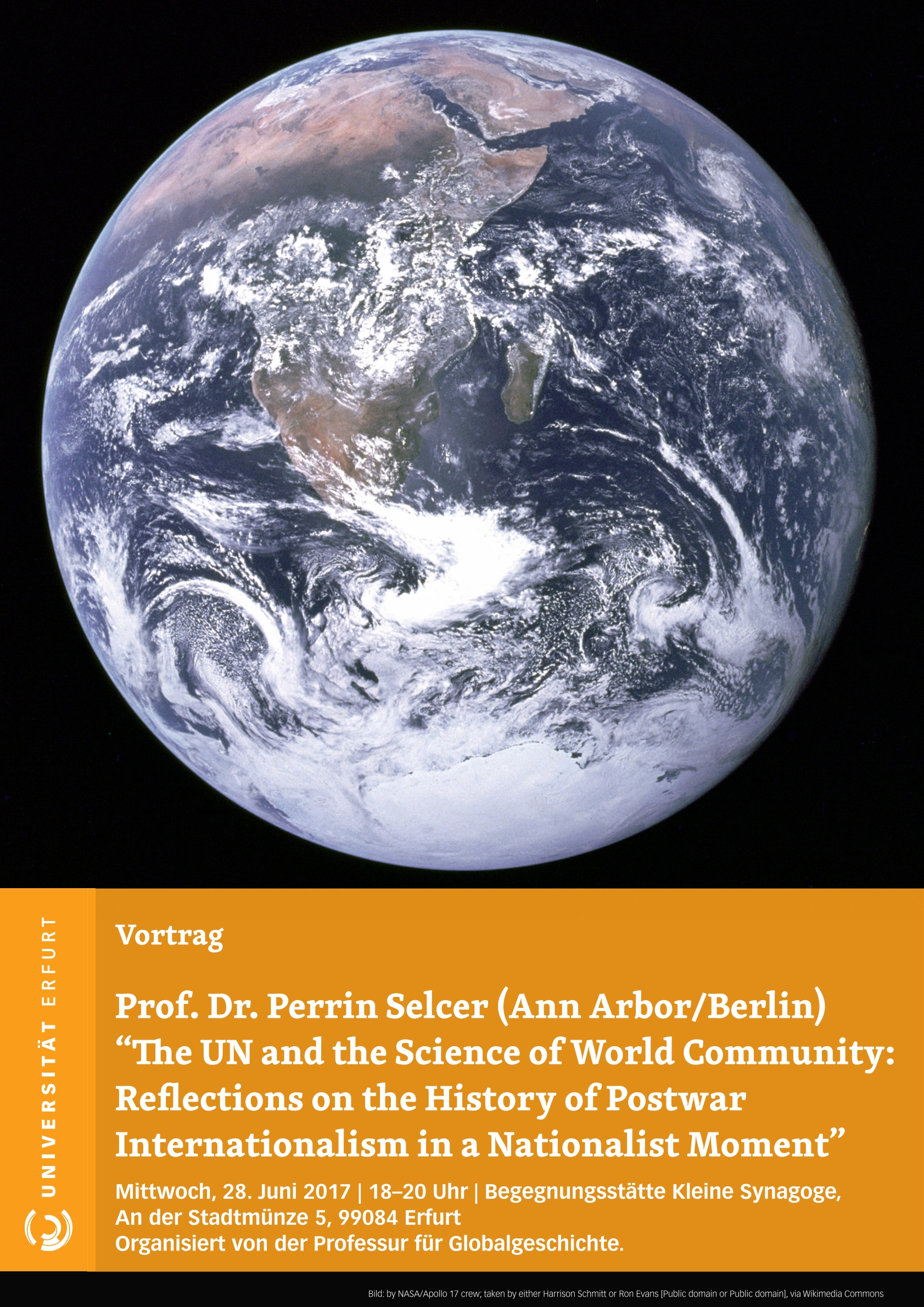 Prof. Dr. Perrin Selcer (Ann Arbor/Berlin): “The UN and the Science of World Community: Reflections on the History of Postwar Internationalism in a Nationalist Moment”.