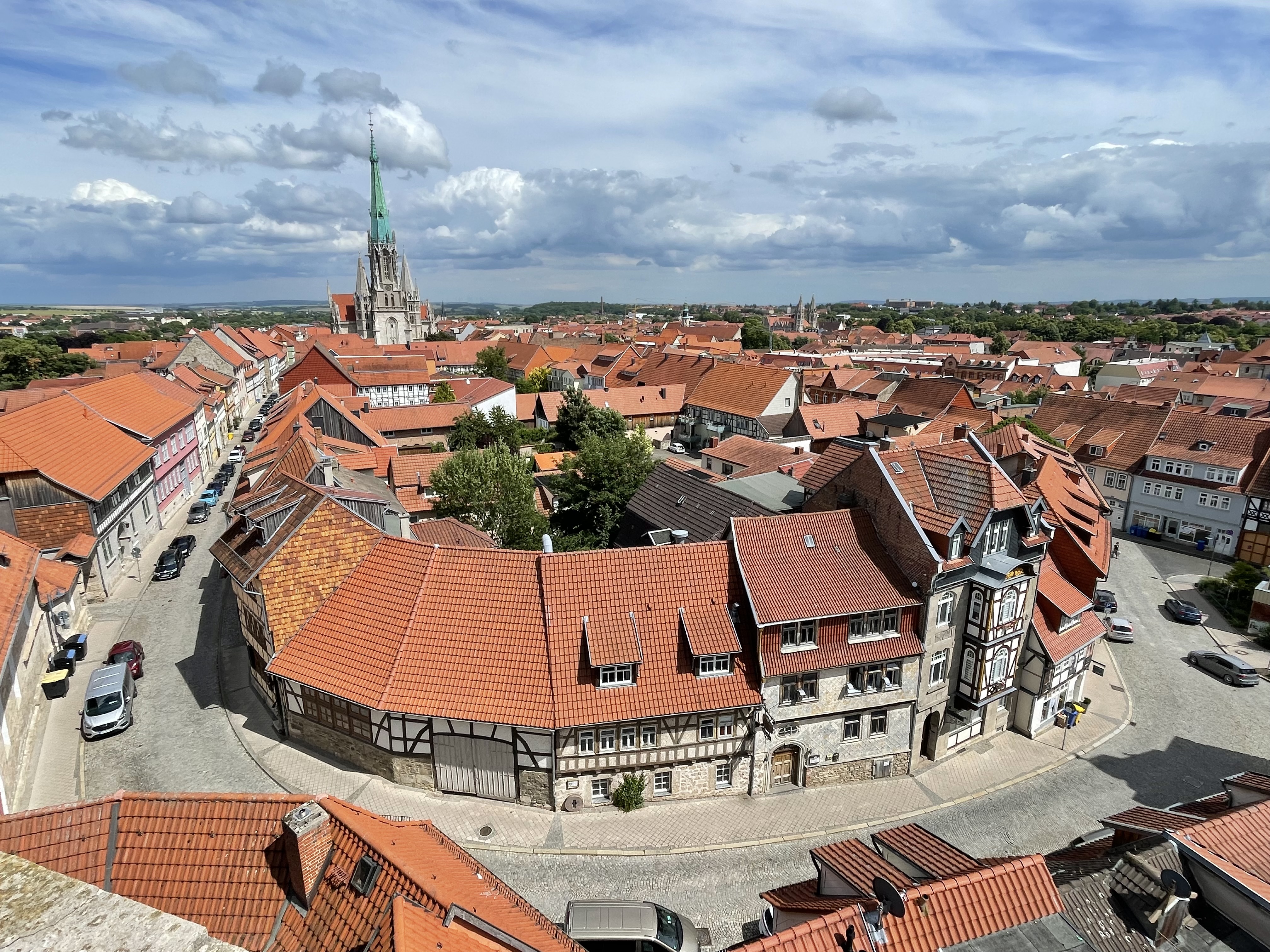 Eine besondere Exkursion war der Besuch in Mühlhausen, an der Teilnehmer*innen aus den Seminaren Seminar „Handschrift, Inkunabel, Druck“ und „Thüringische Städte im Mittelalter“ teilgenommen haben. So konnten beide Gruppen voneinander erfahren, welche Inhalte in dem jeweils anderen Seminar behandelt wurden und von deren Ergebnissen profitieren. Jeweils zwei Studierende hatten einmal den Besuch des 600 Jahre alten Reichsstädtischen Archivs mit Präsentation beeindruckender Archivalien vorbreitet, während die Studierenden des anderen Seminars einen Rundgang durchführten, der Einblick in die lange Geschichte der mittelalterlichen Reichsstadt Mühlhausen; von der viele architektonische Zeugnisse bis heute erzählen, gewährte.