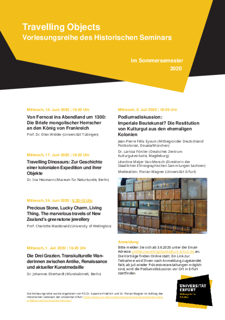 Vorlesungsreihe "Travelling Objects" im Sommersemester 2020