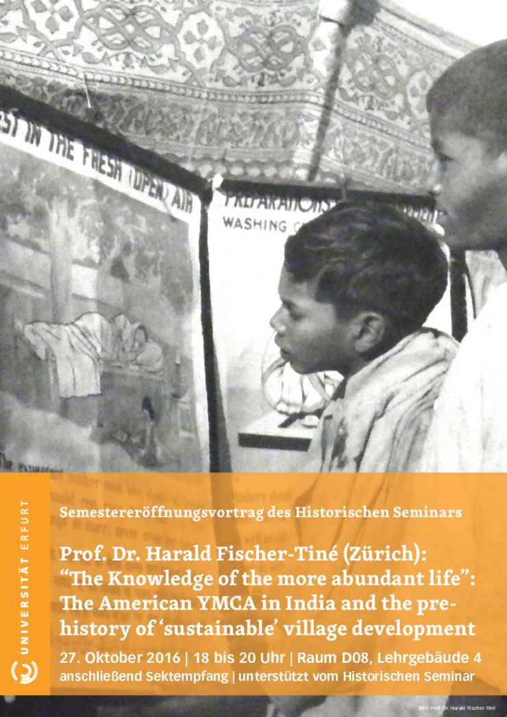 Es sprach Prof. Dr. Harald Fischer-Tiné (Zürich) zum Thema: “The Knowledge of the more abundant life”: The American YMCA in India and the prehistory of ‘sustainable’ village development