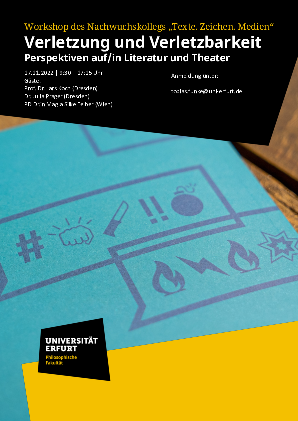 Workshop: "Verletzung und Verletzbarkeit. Perspektiven auf/in Literatur und Theater"