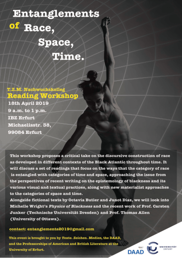 - „Why Reading?“ (Roundtable mit Nils Plath), "Anachronistic Reading: Wallace Stevens's 'The Man on the Dump' and Critical Climate Change“ (Vortrag), "The Medium is the Maker“ (Roundtable), "Ecotecnological Odradek: Machinal or Organic?“ (Vortrag, Weimar, Mediale Historiographien),