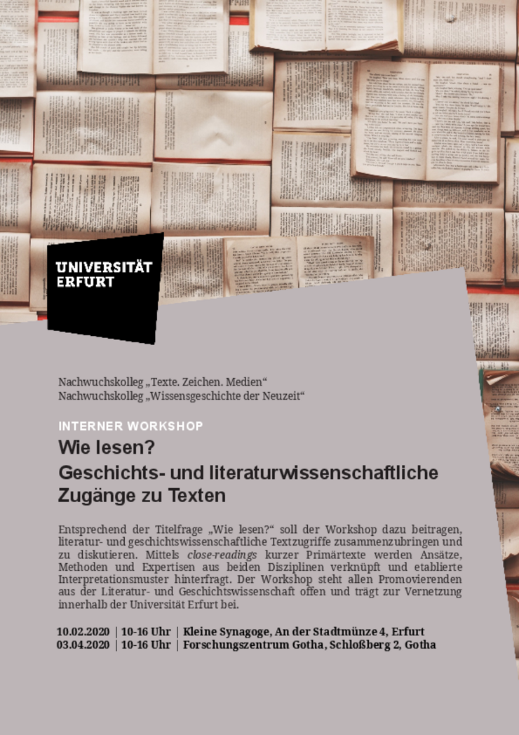 Workshop: Wie lesen?- Geschichts- und literaturwissenschaftliche Zugänge zu Texten