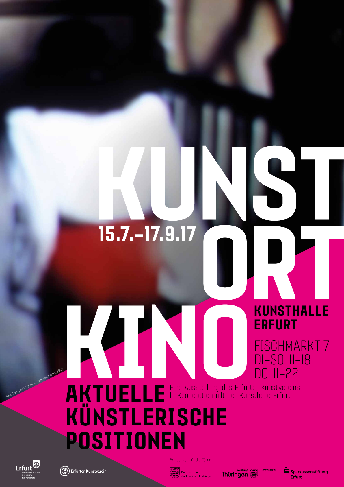 Zugleich wurden zeitgenössische künstlerische Positionen, kuratiert von Susanne Knorr für den Erfurter Kunstverein e.V., gezeigt, welche die vielfältigen Beziehungen von Kino und Kunst thematisieren, wobei der Fokus auf der Kunst als Spiegel des Kinos liegt. Zu sehen waren Installationen, Videos, Fotografien und Gemälde von 18 Künstlerinnen und Künstlern, die mit Material aus der Welt des Films arbeiten, unter anderen Candice Breitz, Bjørn Melhus, Richard Thieler, Isabell Heimerdinger.