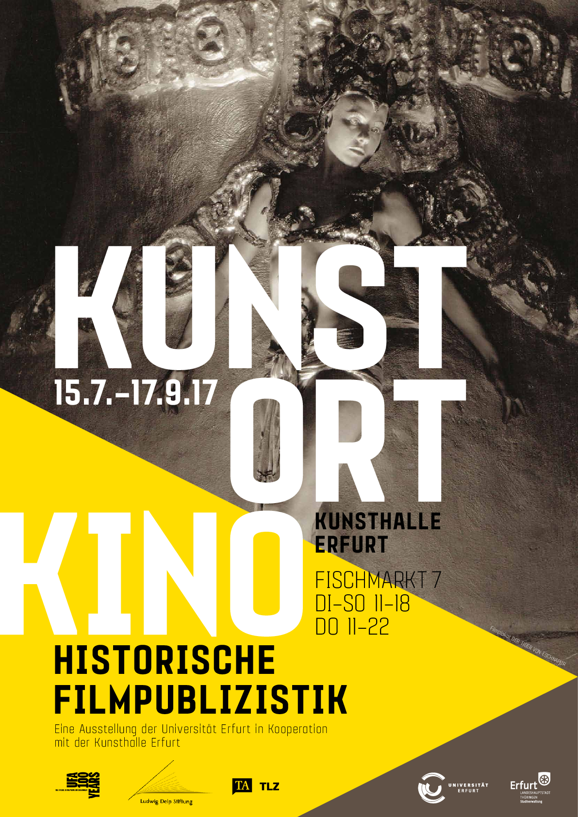Anlässlich des 100-jährigen Gründungsjubiläums der UFA zeigte die Kunsthalle Erfurt vom 16. Juli bis zum 17. September 2017 die Ausstellung "KUNST.ORT.KINO – Historische Filmpublizistik und zeitgenössische künstlerische Positionen", eine Ausstellung der Universität Erfurt und des Erfurter Kunstvereins e.V. in Kooperation mit der Kunsthalle, und rückt damit den Film und seinen wichtigsten Ort, das Kino, in den Fokus.