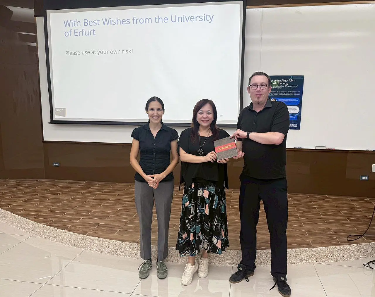 Auf Einladung von Prof. Trisha Tsui-Chuan Lin, Direktorin am Global Communication and Innovation Technology Center der National Chengghi University (NCCU), Taiwan, verbringen Leyla Dogruel und Sven Jöckel gerade einen Forschungsaufenthalt in Taipei. In diesem Rahmen gaben Sie einen Gastvortrag mit dem Titel „Fostering Algorithm and AI Literacy“. Sie zeichneten dabei die Entwicklungslinien ihrer Forschung zu Algorithmen und KI Kompetenz nach und präsentierten erste Ergebnisse aus dem im Jahr 2025 gestarteten Forschungsprojekt AIlis. Die NCCU kooperiert mit der Universität Erfurt bereits im Rahmen von regelmäßigen Studierendenaustauschprogrammen. Mit ihrem Forschungsaufenthalt, hoffen Leyla Dogruel und Sven Jöckel, die Kontakte der Kommunikationswissenschaft nach Taiwan weiter zu intensivieren.