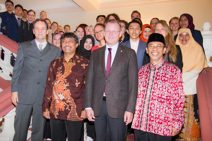 Ministerpräsident Bodo Ramelow hat am Mittwoch, den 5. Oktober 20016 den Startschuss für die zweiwöchige Fall School gegeben, die die Fachbereiche für Kommunikationswissenschaft der Universität Erfurt und der State University of Padjadjaran (UNPAD) in Bandung, Indonesien, an der Universität Erfurt durchführen. Das Thema der Fall School ist der Vergleich der Rolle von Medien im politischen und gesellschaftlichen Transformationsprozess beider Länder. MP Ramelow betonte in seiner Rede die besondere Bedeutung, die der Kooperation mit Indonesien, dem größten muslimischen Land der Erde, gerade in Zeiten wachsender Fremdenfeindlichkeit zukomme. Prof. Dr. Kai Hafez wies auf die bestehenden Defizite des globalen Wissens im deutschen Bildungssystem hin, das außereuropäischen Ländern wie Indonesien nur eine marginale Stellung zuweise. Bei dem anschließenden Empfang von Seiten der Universität Erfurt bezeichnete die Vizepräsidentin der Universität, Frau Prof. Dr. Heike Grimm, sowie der Sprecher des Seminars für Medien- und Kommunikationswissenschaft, Prof. Dr. Patrick Rössler, die Fall School als wichtigen Baustein der Internationalisierung der Hochschule.