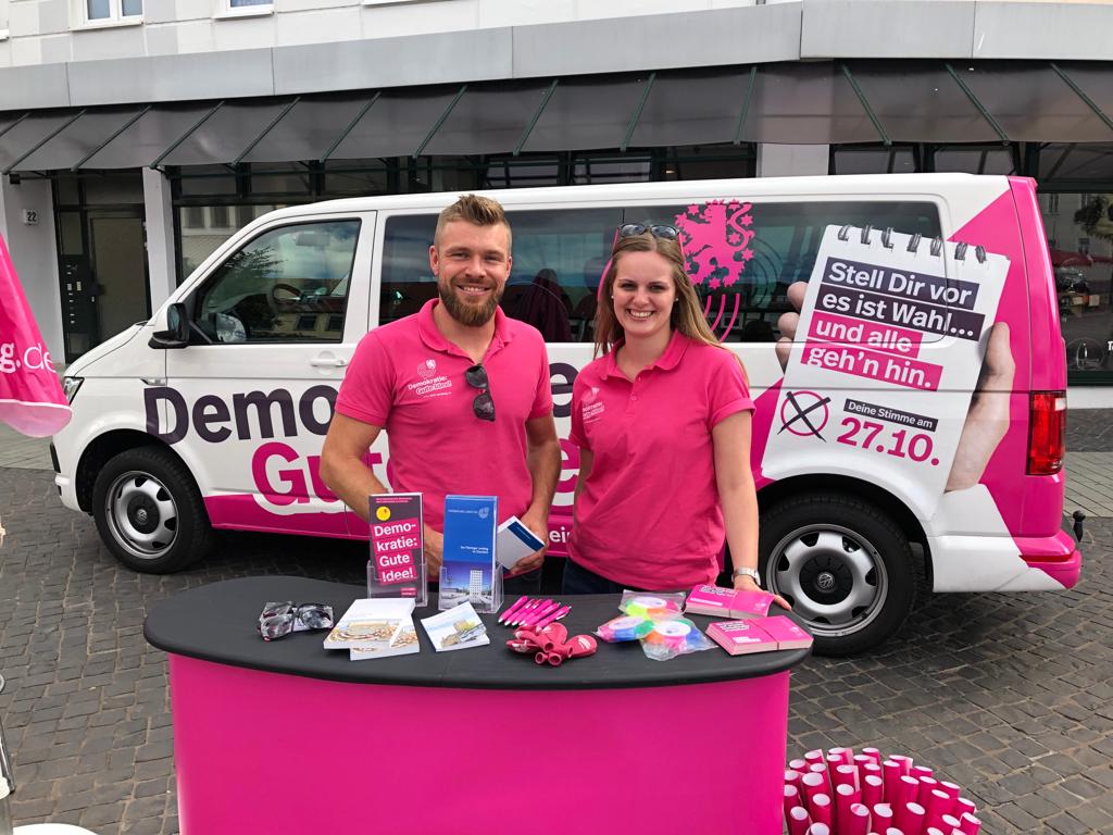 „I‘m very happy to be part of such a cool team working on the democracy campaign for the upcoming state election in Thuringia in October. It is very interesting to get deeper insights into the field of PR especially in terms of how to encourage people to go out and vote in such exciting political times!“