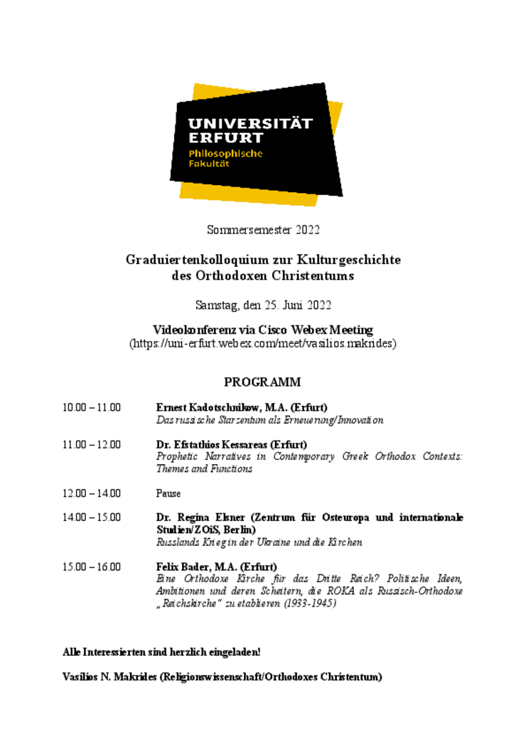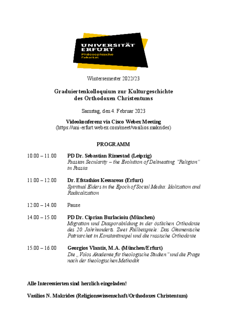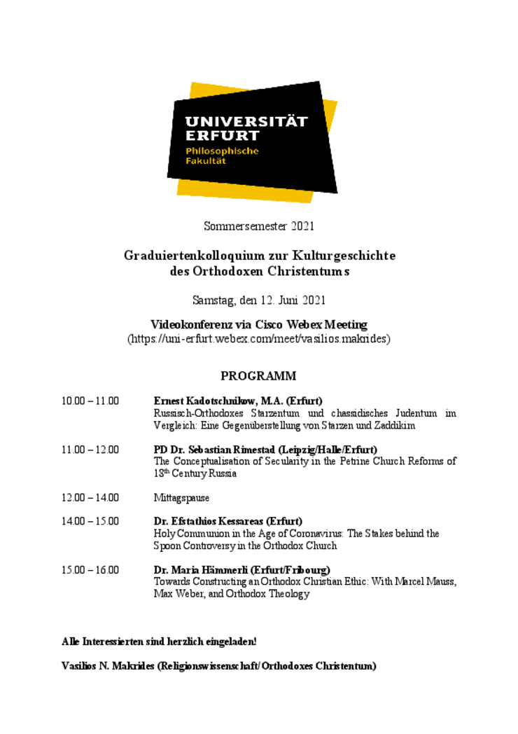 Graduate Colloquium on the Cultural History of Orthodox Christianity