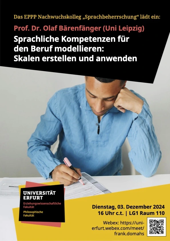 03.12.24 - Gastvortrag - Prof. Dr. Olaf Bärenfänger (Universität Leipzig) - Sprachliche Kompetenzen für den Beruf modellieren: Skalen erstellen und anwenden (Aushang)