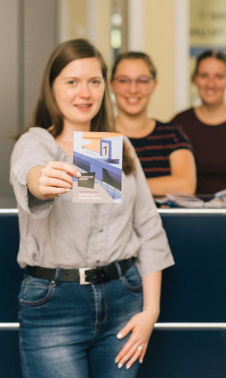 Das Abitur steht an oder ist sogar (fast) geschafft. Jetzt kommt der nächste Schritt auf dem Weg ins Berufsleben. Ein Studium in Erfurt zum Beispiel. Aber das will gut geplant sein. Sie wollen bei der Orientierung natürlich unterstützen und haben dabei vermutlich viele Fragen. Keine Sorge: Die Universität Erfurt ist an Ihrer Seite! Gemeinsam mit unseren Experten aus der Studienberatung und mit Mentoren, die unsere Studierenden auf ihrem Weg zum Bachelor oder Master begleiten.