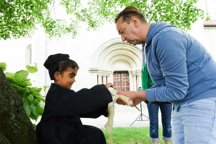 Und als sich das Studium dem Ende neigte, sollte sich eine Projektidee in der evangelischen Kita ihres Vaters als große Chance für unsere Absolventin erweisen: „Die Idee war, das Thema ‚500 Jahre Reformation‘ gemeinsam mit den Kindern künstlerisch – vorzugsweise als Bilderbuch – zu gestalten. Und da zu jedem Bilderbuch auch eine Geschichte gehört, kam mein Vater auf mich zu, um diesen Part zu übernehmen.“ Wie man es schafft, gemeinsam mit Kindern eine Geschichte zu erarbeiten und ihnen gleichzeitig Martin Luther näherzubringen? „Christoph Peter Ehrlich (Verleger & Co-Autor) und mir war es wichtig, die Kinder von Anfang an einzubeziehen. Deshalb beschlossen wir, fünf Schwerpunkte aus Luthers Thesen auszusuchen und die Kinder zu den Stichworten Liebe, Angst, Schatz, Himmel und Hölle sowie Gott zu befragen. Anhand dessen, was die Kinder uns dann in fünf spielerisch gestalteten Sitzungen erzählten, strickten wir eine zusammenhängende Geschichte.“ Im Anschluss ging es darum, diese auch bildlich zu begleiten. Mit Hilfe verschiedener Kooperationspartner wurden Kostüme angefertigt, Theaterkulissen aufgebaut und historische Orte besucht. In den Hauptrollen: die Kinder. Die durften nun ihre Geschichte nachspielen und wurden dabei professionell abgelichtet. Aus dem fröhlichen Spiel der Kinder entstand so ein kindgerechtes 48-Seiten starkes Bilderbuch, das sowohl als pädagogisches Mittel für andere Heranwachsende als auch schlicht zur Unterhaltung dienen kann. Was Madita Heubach an der Arbeit am besten gefiel? „Zum einen habe ich die Gespräche mit den Kindern sehr genossen. Es war wirklich interessant, zu hören, was sie zu den unterschiedlichen Begriffen zu sagen haben. So konnten wir die Welt einmal aus ihren Augen sehen. Zum anderen fand ich es spannend, mit jemand anderem zusammen an einer Geschichte zu schreiben und sich quasi in Echtzeit auszutauschen.“