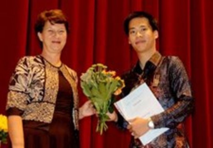 Na wenn das kein Grund zum Gratulieren ist: Hosea Saputro Handoyo, Student im Master of Public Policy an der Willy Brandt School of Public Policy der Universität Erfurt, ist im Rahmen der Graduierungsfeierlichkeiten am vergangenen Samstag im Audimax mit dem DAAD-Preis für hervorragende ausländische Studierende ausgezeichnet worden. Der Preis wird alljährlich vom Deutschen Akademischen Austauschdienst ausgelobt und ermöglicht den Mitgliedshochschulen des DAAD, ausländische Studierende für besonderes Engagement zu ehren. Aufgrund seiner herausragenden akademischen Leistungen an der Schnittstelle von Natur- und Sozialwissenschaften, von Forschung und Politik sowie seines sozialen Engagements hatte die Brandt School den Studenten für den Preis vorgeschlagen.