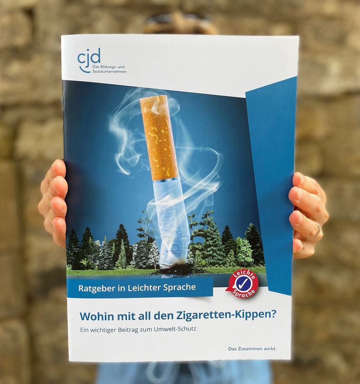 Dabei war sie eigentlich eher durch Zufall beim CJD, genauer gesagt im 'Büro für Leichte Sprache / Zentrum für Kommunikation' gelandet – eine Kommilitonin hatte es empfohlen, als Juliane auf der Suche nach einem geeigneten Ort für ein Pflichtpraktikum im Rahmen ihres Studiums war. "In diesem Praktikum lag mein Schwerpunkt auf dem Übersetzen von Texten in sogenannte 'Leichte Sprache'. Es standen verschiedene Themen zur Auswahl und so entschied ich mich schließlich, eine Broschüre zum Thema Zigarettenkippen und Umweltschutz zu erstellen." Mit 'Leichter Sprache' hatte Juliane damals noch wenig Erfahrung: "Ich wusste, dass es Leichte Sprache gibt, weil mir das Angebot häufiger auf verschiedenen Websites begegnet war. Allerdings habe ich mich bis zu meinem Praktikum nie näher damit beschäftigt." Heute weiß sie, wie wichtig es ist, komplexe Themen für alle Menschen – auch solche mit sprachlichen oder kognitiven Beeinträchtigungen – aufzubereiten. "Ich habe so viel dazugelernt, nicht nur was das Thema Zigarettenkippen und Umwelt betrifft, auch hinsichtlich der 'Leichten Sprache' als Variante des Deutschen, was für mich als Linguistik-Studentin wirklich toll war." Auch wenn es gerade am Anfang nicht immer einfach war: Juliane musste umdenken – kurze Sätze bilden, nur einen Gedanken pro Satz, keine Fremdwörter, lange Wörter, wenn möglich, durch Bindestrich trennen –, um ein größtmögliches Textverständnis zu gewährleisten. "Aber ich hatte auch Unterstützung seitens des CJD", sagt sie. "Nancy Brack und Christiane Bähr brachten mir viel Vertrauen entgegen und ich konnte sehr selbstständig am Text arbeiten. Es war super hilfreich, zwei Expertinnen an der Seite zu haben, die mir immer wieder sagten, wenn noch etwas zu kompliziert, zu komplex formuliert war und noch genauer erklärt werden musste. Außerdem habe ich mich mit Mario Merella vom Abfallunternehmen „TobaCiycle“ ausgetauscht und durfte Informationen der Unternehmenswebsite für mein Projekt nutzen."