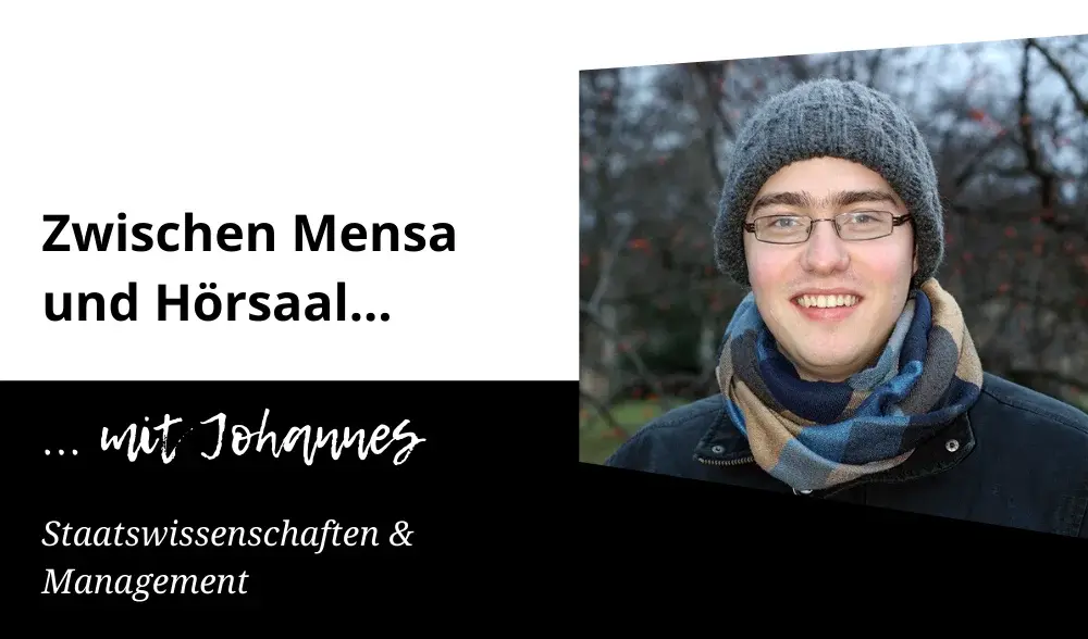 Johannes studiert im Bachelor Staatswissenschaften, insbesondere Sozialwissenschaften, und Management. Er ist direkt nach dem Abitur an die Universität Erfurt gekommen. Wir haben ihm ein paar Fragen zu seinem Studium gestellt.