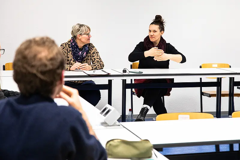 Daher geht es in erster Linie auch um Vernetzung: Zwischen hörenden, schwerhörigen und gehörlosen Menschen, zwischen Studierenden, Lehrenden und externen Fachpersonen. Ein Beispiel dafür ist der Kontakt zu Dirk Senebald, einem Mitarbeiter des IT-Support der Universität Erfurt, der taub geboren ist und bereits in DGS-Kursen eingebunden war. Solche Begegnungen sollen Perspektiven erweitern und Vorurteile abbauen.
