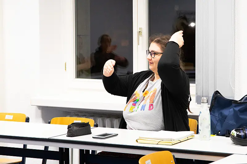 Ob absolute Anfänger*in oder bereits mit DGS vertraut – bei „Sprechende Hände“ zählt vor allem die Offenheit. Die Hochschulgruppe versteht sich als Lernraum, Begegnungsort und Gemeinschaft zugleich. Oder, wie Felix es zusammenfasst: