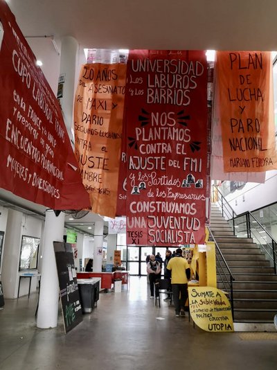 La Plata ist zudem eine absolute Studierendenstadt. Die UNLP und insbesondere die Faculdad de Humanidades y Sciencias de la Educación (FaHCE) sind für ihre hervorragende Lehre und Forschung bekannt und ziehen Menschen aus dem ganzen Land an, was zu einer jungen, bunten Stadt führt, in der jede:r eine Nische findet. Die FaHCE ist außerdem ein sehr politischer Ort; überall hängen Plakate, die für verschiedene politische Ansätze und Organisationen werben. Auch wenn das Plakatgewirr zu Beginn ein wenig überfordernd ist, mit der Zeit – und ausführlichen Erklärungen Mitstudierender – versteht man immer mehr und lernt den Mikrokosmos argentinischer Politik an der Fakultät zu schätzen.