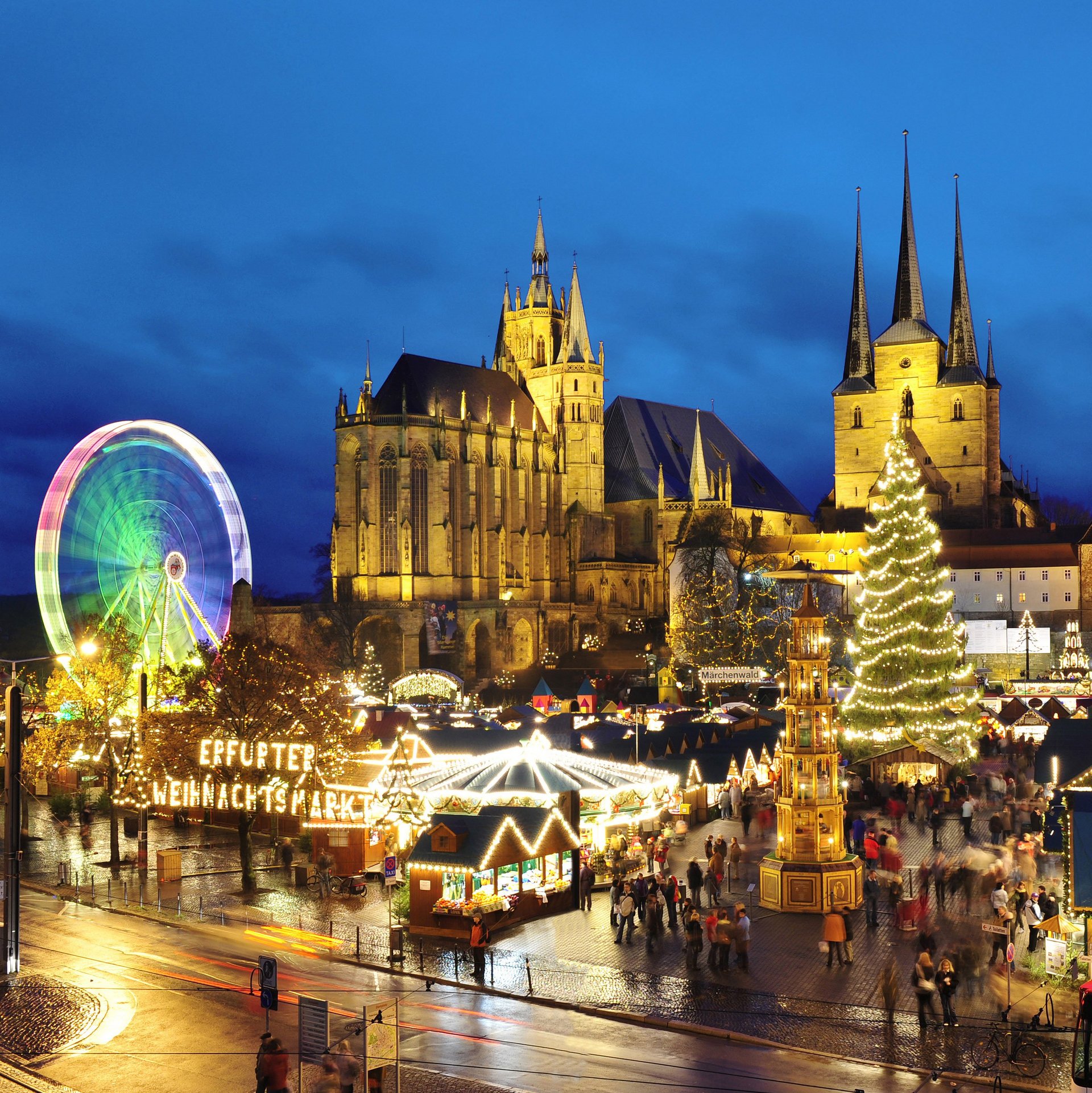 Bei einem Spaziergang durch Erfurt beeindrucken neben dem Ensemble von Mariendom und Severikirche auch die Zitadelle Petersberg und die 120 Meter lange Krämerbrücke, die einzige vollständig mit Häusern bebaute und bewohnte Brücke Europas. Sie ist zudem die Kulisse für Thüringens größtes Altstadtfest – das Krämerbrückenfest. Hier versammeln sich jedes Jahr im Juni Gaukler, Händler und Musiker zum bunten Stelldichein und verzaubern Jung und Alt. Im Winter hingegen stimmt der Erfurter Weihnachtsmarkt, einer der schönsten und ältesten Deutschlands, die Besucher mit Thüringer Spezialitäten auf das Weihnachtsfest ein.