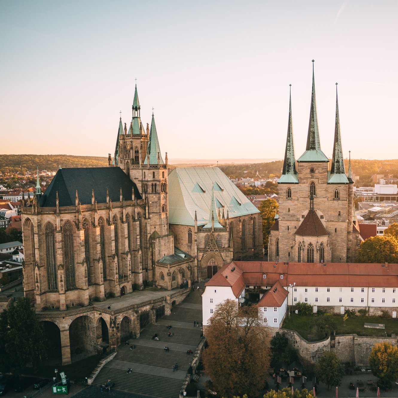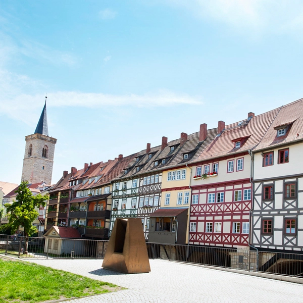 Im Mittelalter kreuzten sich hier mit der Via Regia und der Nürnberger Geleitsstraße zwei wichtige Handelswege und verhalfen Erfurt zu Bedeutung und Reichtum. Nicht zuletzt dem Handel mit Waid, einer Pflanze mit der Stoffe blau gefärbt wurden, verdankt die im Jahr 742 erstmals urkundlich erwähnte Stadt auch heute noch ihre Attraktivität und Strahlkraft. Die reizvolle Altstadt, die in ihrer mittelalterlichen Struktur weitgehend erhalten ist, verzaubert sowohl Einwohner als auch Besucher mit Charme und Atmosphäre. Stimmungsvolle Gassen und Plätze laden mit ihrem einmaligen Flair zum Schlendern und Verweilen ein.