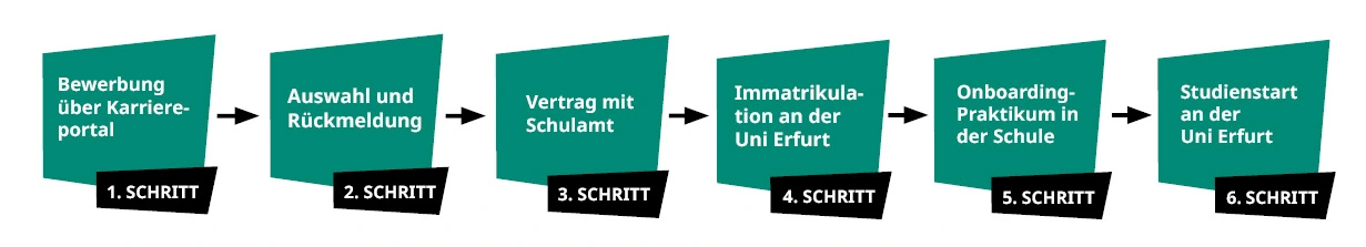 Die Bewerbung erfolgt vom 1. bis 31. März über das Karriereportal für den Thüringer Schuldienst (zunächst nicht über die Universität Erfurt). Dort wählen Sie Ihre zwei Studienfächer aus. Die Bewerbungsrunde für das Wintersemester 25/26 ist abgeschlossen und es sind derzeit keine Bewerbungen mehr möglich.