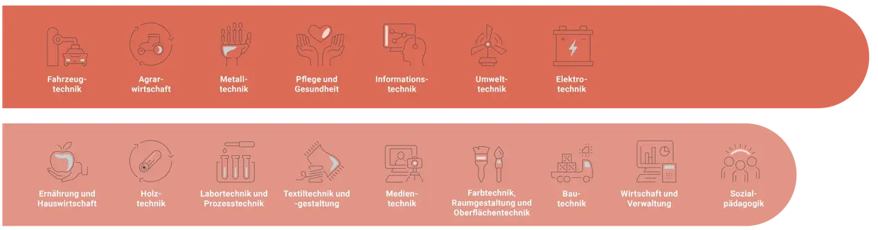 Um als Lehrer oder Lehrerin an einer Berufsschule arbeiten zu können, sind eine berufliche Fachrichtung (Berufsbildendes Fach) und ein allgemeinbildendes Fach erforderlich.