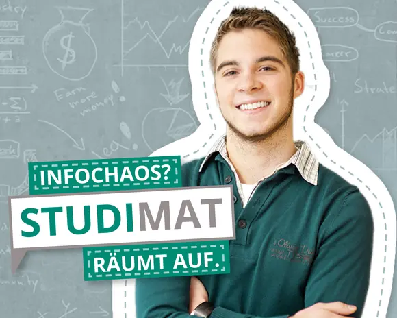 Wir lassen Sie mit Ihren Fragen nicht allein. Unser "STUDIMAT" hilft Ihnen dabei, sich einen Überblick über unsere 26 angebotenen Bachelor-Studiengänge zu verschaffen und mithilfe des Konfigurators passend zu kombinieren. Mit nur wenigen Schritten erhalten Sie Ihr persönliches Ergebnis mit Quick-Infos zu den Bewerbungsfristen, Ansprechpartnern, Studieninhalten sowie Porträts von Studierenden und Absolventen der gewählten Studienrichtungen.
