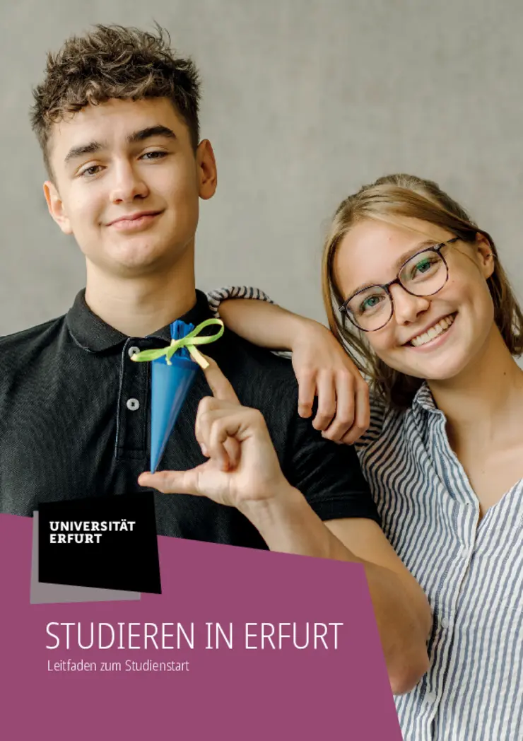 Mit dem "Leitfaden zum Studienstart: Studieren in Erfurt" möchten wir Sie neugierig machen, Ihnen erste grundlegende Informationen rund um das Studium an der Universität Erfurt liefern, die am häufigsten gestellten Fragen beantworten und Ihnen natürlich auch Ansprechpersonen für weitergehende Fragen nennen.