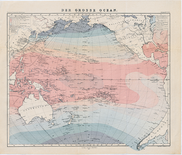 Auf den Meeren formte sich die Welt zur Einheit. Welchen Anteil die Kartographie der Meere daran trug, globale Zusammenhänge beobachtbar und begreiflich zu machen, zeigt ab 29. November 2021 die digitale Ausstellung „Karten Wissen Meer: Globalisierung vom Wasser aus“. An Exponaten aus der Sammlung Perthes Gotha und der Kartensammlung des Deutschen Schifffahrtsmuseums wird nachvollziehbar, wie See- und Meereskarten ab der Wende zum 19. Jahrhundert zu Medien der Globalisierung avancierten. Zu einer Online-Vorstellung seiner Schau lädt der Forschungsverbund „Karten-Meer“ am Montag, 29. November, um 18.15 Uhr alle Interessierten herzlich ein.