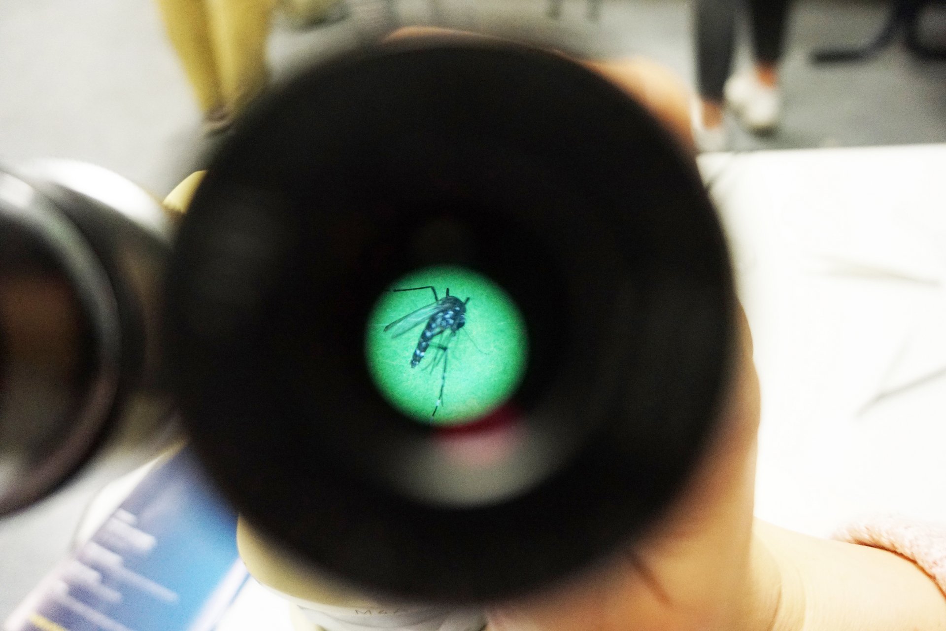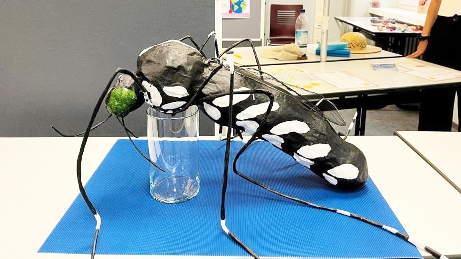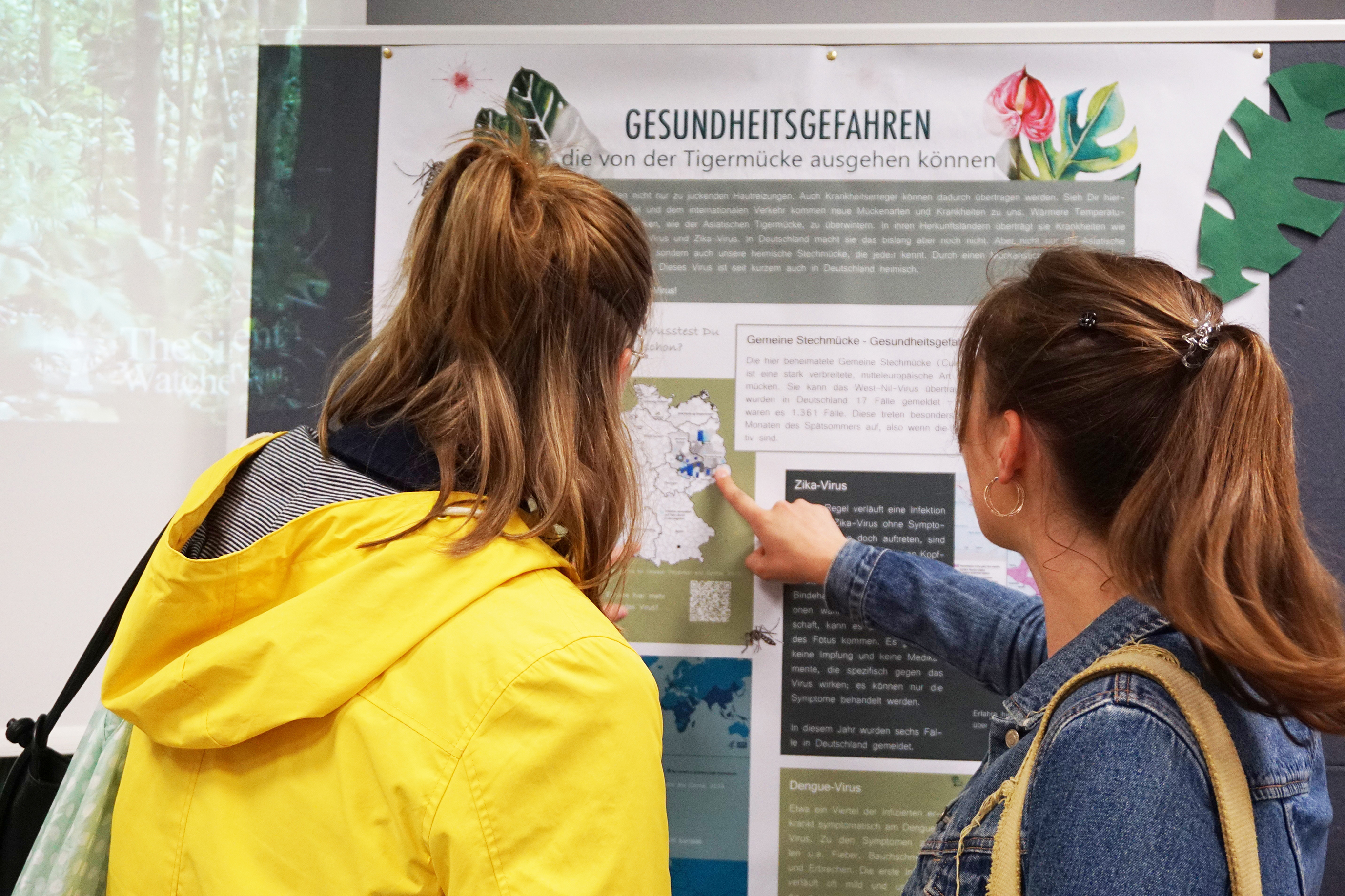 Schon mal eine Tigermücke gesehen? In ihrer interaktiven Ausstellung informierten die Student*innen den Besucher*innen zu Vorkommen, Gefahren und Schutz vor dem Eindringling, der aufgrund des Klimawandels mittlerweile auch in Deutschland Fuß gefasst hat.